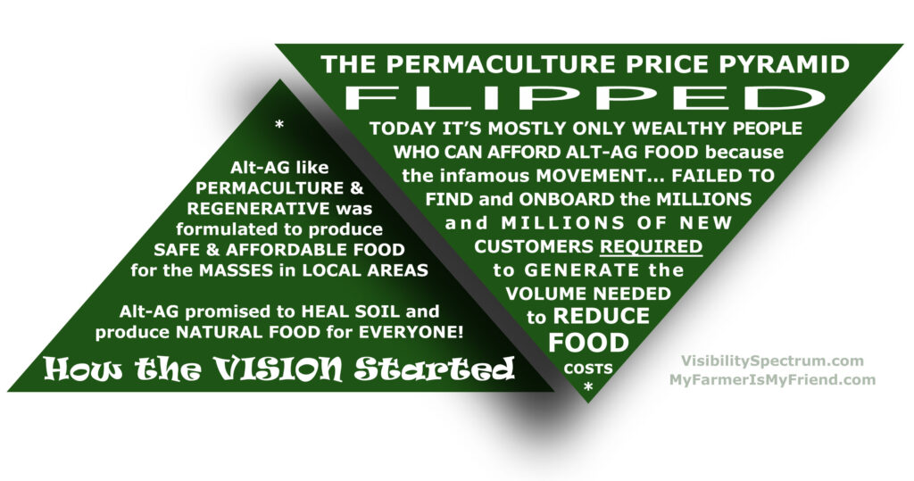 Reduced operating costs and increased profit have the attention of conventional factory farmers. On another level though, where money is tighter, the “MOVEMENT” is not delivering for INDEPENDENT FARMERS who have practiced Alt-AG methods like organic, permaculture and regenerative agriculture for many years, some for decades. For many INDIE FARMERS unfortunately, the Alt-AG movement stalled long ago.